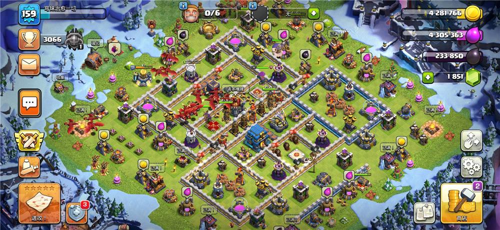 (本文小编:絮凝霜重)很舒服的正正方方的12本阵型,城墙的布置干净简短。大本附近防御也是顶级的,这个阵型还不错。