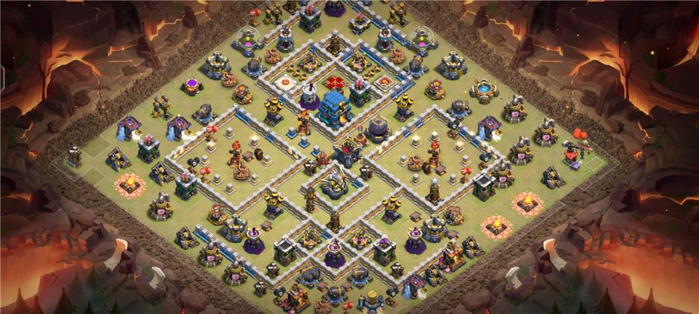 是个岛阵型,单独把地狱塔放置,且在女王的攻击范围之外,能够有效避免地狱之塔在瞬间暴毙。这个阵型在部落战中还是勉强不错的,推荐12本玩家用这个阵型。