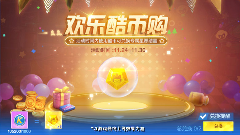 11月24日-11月30日,车友们可以在活动界面使用酷币兑换珍贵道具:1000酷币兑换击鼓喵星愿结晶*5。每人最多可以兑换两次,共可兑换击鼓喵星愿结晶*10!