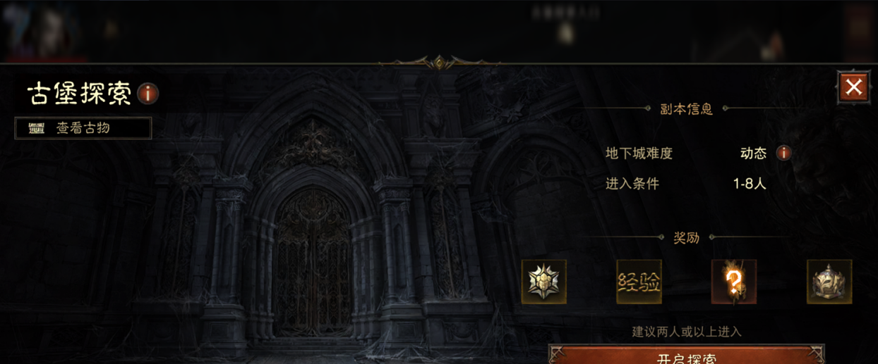 古堡探索的主要目的是为了寻找古物,所以尽量探索古堡三个房间的每一个角落,当前版本三个房间不能同时探索,只能击杀掉当前房间的BOSS之后才能探索下一个房间,希望官方能对此做一下改动,提高多人探索的效率,古物可以通过开宝箱和击杀BOSS随机获得,普通小怪不需要击杀,可以节约大量时间,但是一定要留意突发事件,完成突发事件必定奖励一个宝箱,有几率开出古物。