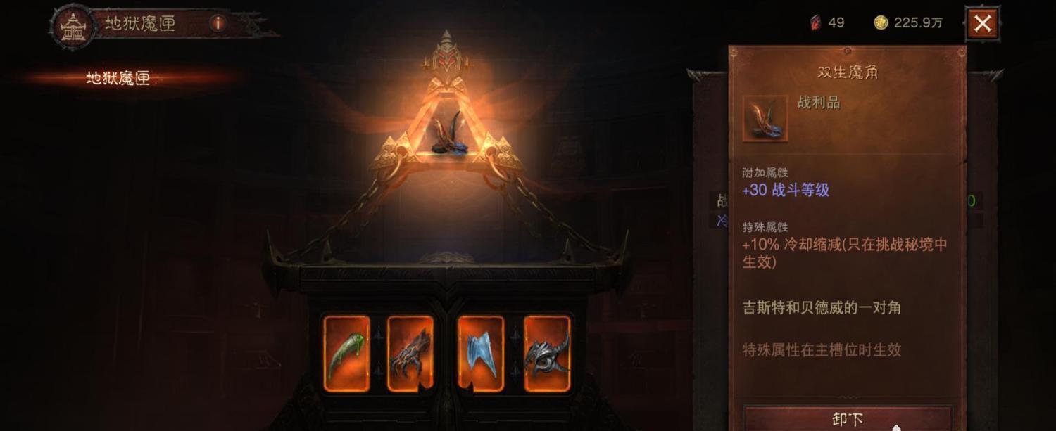 双生魔角:加30战斗等级和加10%冷却缩减(只在挑战秘境生效)