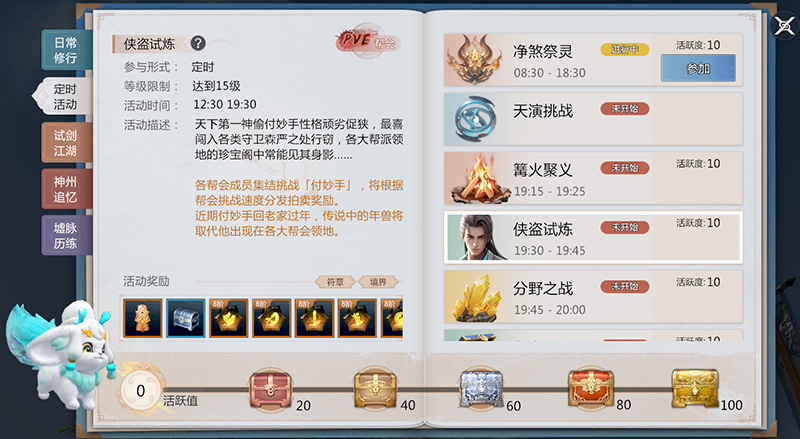 年兽入侵神州!新春「年兽」将在每日「侠盗试炼」玩法期间侵扰帮会腹地,替代付妙手迎接各位少侠挑战,击退年兽有机会获得全新马年坐骑自选箱(坐骑·玄曜 /玉霄 /炎骧) !