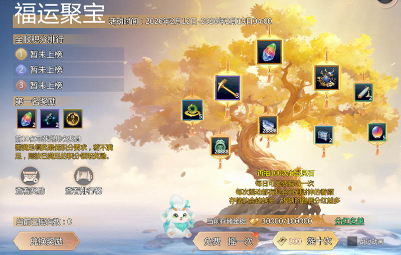 新增“马力全开”(30天)限定称号奖励!福运傍身,聚宝活动开启,参与玩法有机会摇出潜龙锥、岁华葫芦、万象灵石等惊喜道具,累计聚宝积分达到100分即可得“马力全开”(30天)限定称号,登上摇钱树排名更有特殊称号、蒙尘的定敕符章(八阶)等好礼!