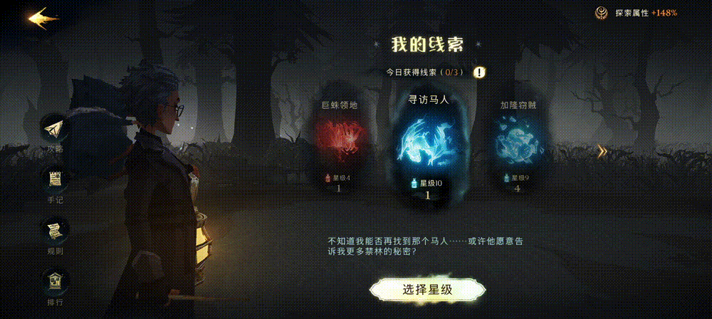 挑战禁林的前提条件是我们必须解锁新线索,从而获得挑战资格。获得线索的方法也有许多种,我们可以从日常对局和日常活动、舞会或者禁林巫师互助获得信物去神秘商店兑换线索等等,这些方法都是非常可取的。不断的触发禁林新线索与挑战线索,提升我们的线索的星级,线索的星级越高获得回响的品质就越好!