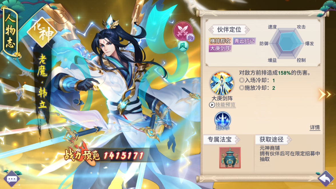 2. 化神伙伴组队来,老魔·韩立、冰凤闪亮登场!还有专属法宝上线哦!
