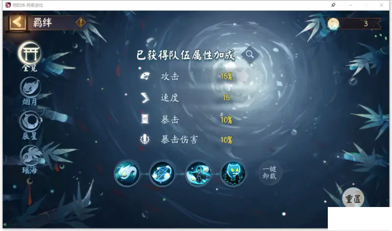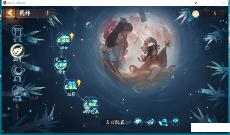 烟影:释放技能概率不消耗鬼火。应该算有一点鸡肋,现在活动主要的式神千姬等等加伤比较离谱,正常不会选择抛弃。而且概率回火影响阵容稳定性。