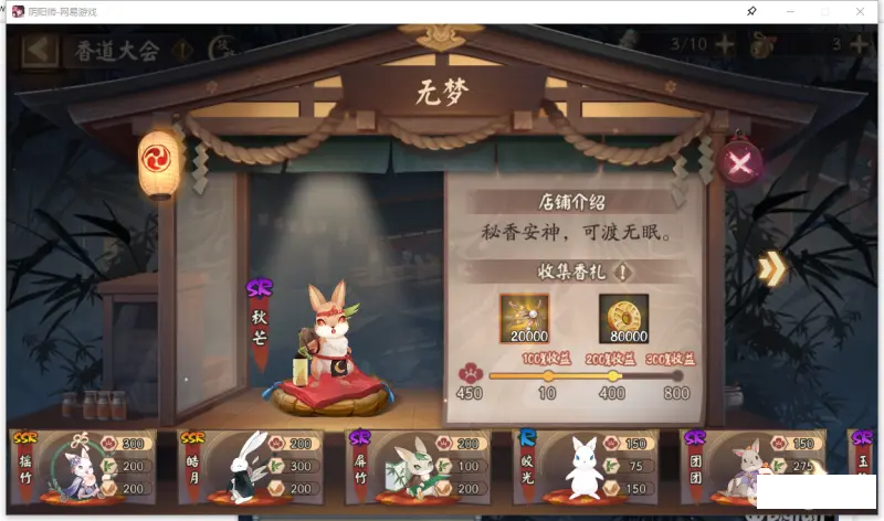 香道大会:给阴阳师们每天提供各种材料的小游戏。