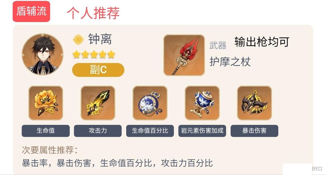 圣遗物:四千岩or二千岩+任意(一二命更建议四千岩)