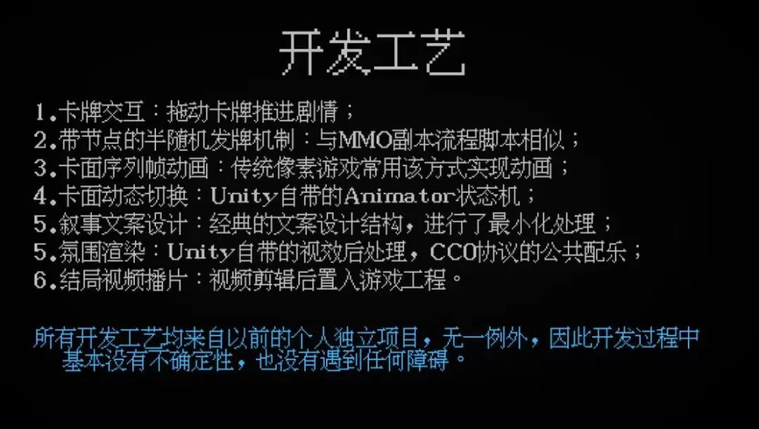 既往的经验和工艺对《万手一体》的开发起到了至关重要的作用。例如,序列帧动画的灵感,就源自一款杨泽宇之前做的像素游戏Demo的美术;牌面实景拍摄的制作方法,则源自他曾制作的多分支视频;而游戏的叙事,出自他制作一个AVG时得到的经验。