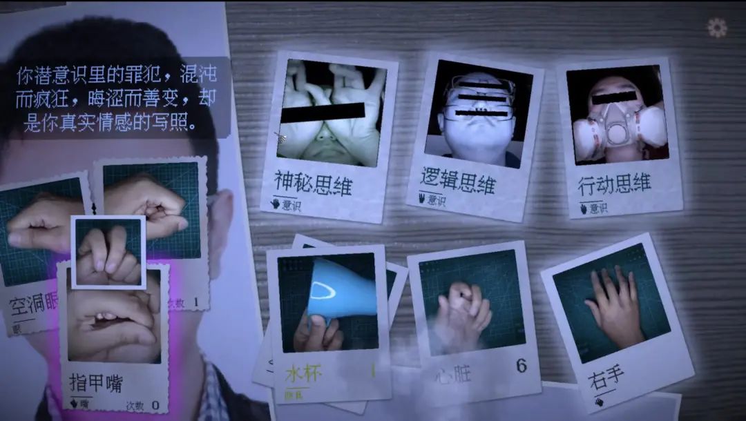 另外,在游戏的许多细节中可以看出,《万手一体》注重对氛围的营造。游戏里有着不少对“内心”这一概念进行具象化的表达。比如“神秘”“逻辑”“行动”三个思维,就是内心潜意识的拟人化。