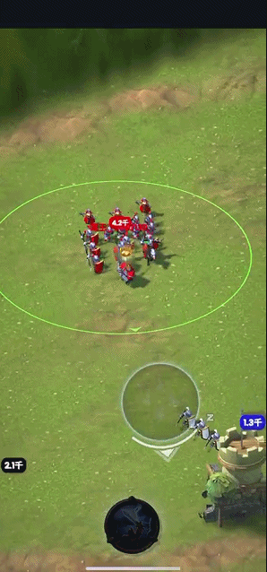 游戏中玩家通过仅有的虚拟摇杆来操作英雄,英雄靠近地图上中立的单位即可将其招募、形成队伍。队伍规模越大,招募圈的影响范围也就越大,但整体的移动速度会随之降低。