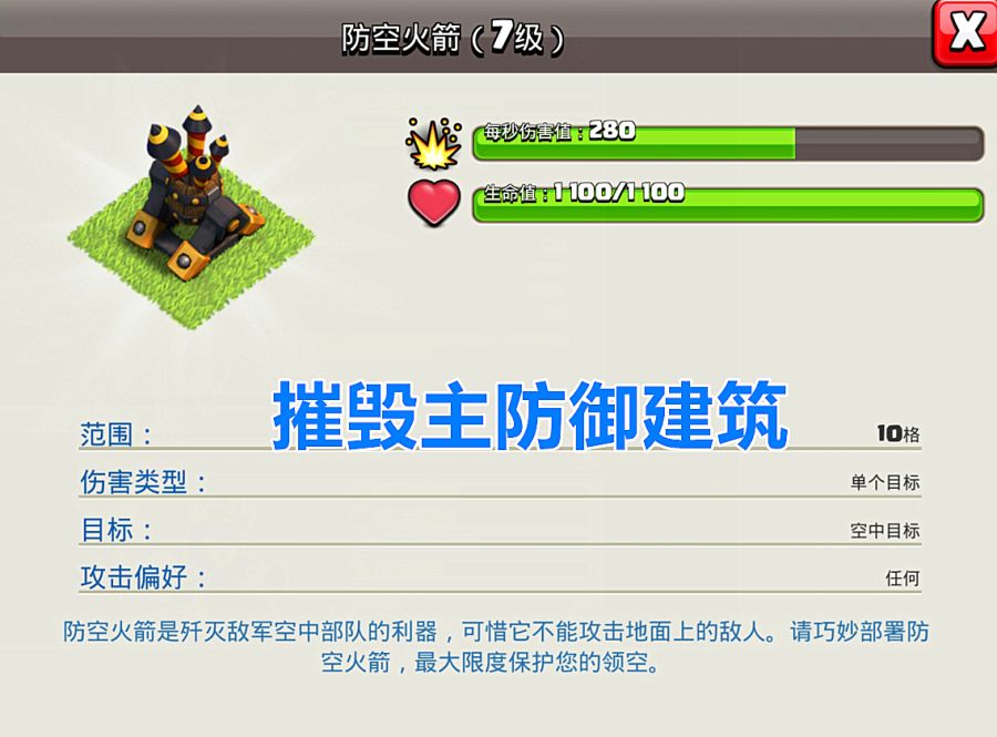 没玩不知道,玩上吓一跳,狗球流要比小白想象的难了很多,进攻思路和地面流派的差异很大,首先就是在防御建筑上面,我们拿10级大本营举例:吹风机、防空导弹、法师塔、X弩、多头地狱塔、敌方女王、部落城堡这些建筑对气球兵的威胁都很大,所以这些建筑就是我们打击的首要目标。