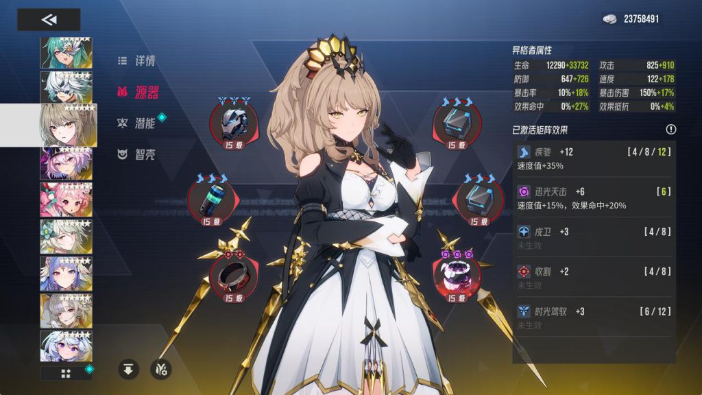 但《伊瑟》的“不安分”远不止于此。更关键的创新在于其矩阵系统:角色所装备的源器与智壳都会提供矩阵点数,当点数累计达到不同档位时,可激活四件、八件乃至十二件的套装效果。而其中给与的数值加成相当慷慨,这也使得矩阵成为继源器与智壳相互联动的第三系统。