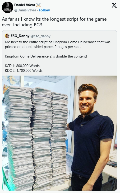 《天国:拯救2》导演晒出的游戏文本量,相当直观