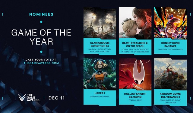 答案或许不在于预算,而在于“诚意”与“新鲜感”。回看今年TGA的年度游戏提名阵容,堪称一场“小团队的逆袭”。《光与影:33号远征队》《死亡搁浅2》《咚奇刚:蕉力全开》《哈迪斯2》《空洞骑士:丝之歌》《天国:拯救2》这六款作品中,至少有三款出自中小团队之手——这在TGA历届提名中是极为罕见的信号。