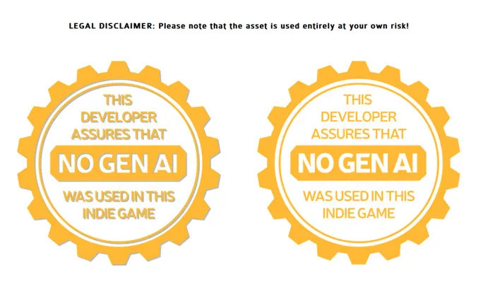 与此同时,Steam平台上的一股新风潮正在形成——越来越多的开发者开始在游戏介绍页面的显眼位置,打上社区自制的“No AI”或者“Human Made”的小金标。