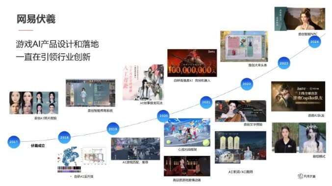 从 2017 年以来,围绕游戏+AI,我们陆续在行业首创过很多 AI 玩法,其中不少玩法获得了玩家的认可和喜欢。早期我们做过角色相关的智能创建,当时可能叫别的名字。后来随着 AIGC 火热,我们才发现原来这个东西就叫 AIGC。这些创新玩法还包括对战匹配、智能推荐、AI 反外挂等,以及近年来推出的智能 NPC、游戏内 AI 队友等互动玩法。