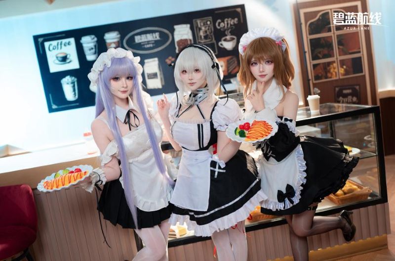 场景搭建上,这次《碧蓝航线》快闪活动以冬日咖啡屋为主题,整体上显得十分温馨,官方邀请到现场的COSER也都选择了女仆COS装扮,这一方面是符合咖啡屋的主题,另一方面其实也是适配最近《碧蓝航线》冬日版本推出的系列女仆换装。