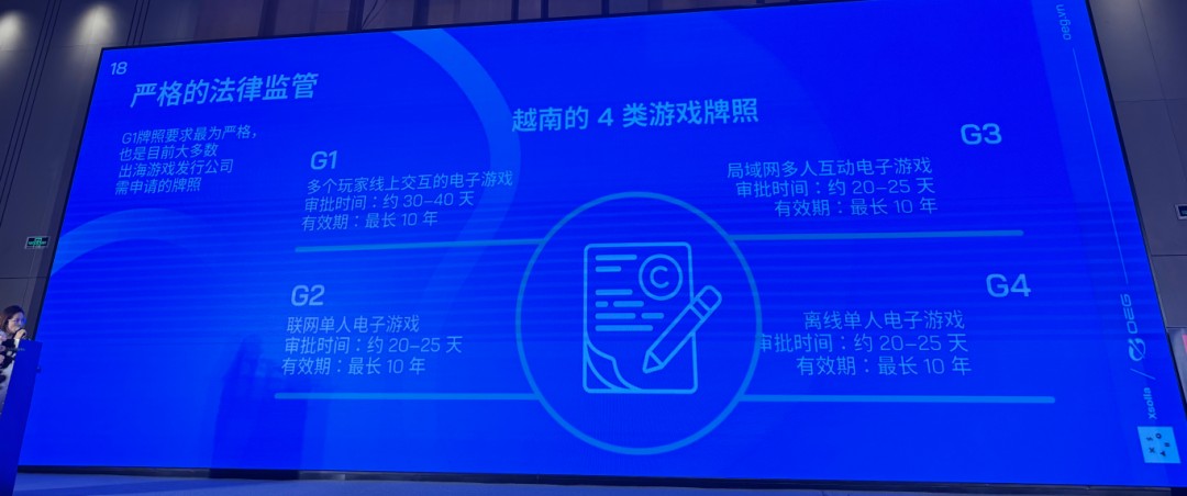 关注越南市场的朋友可能知道,越南也有版号制度,类似国内。版号分为四类:G1、G2、G3 和 G4。其中 G2 至 G4 适用于休闲、超休闲和单机游戏,申请相对简单。最难的是 G1,适用于多人在线交互游戏,申请时间约 30 到 40 天。G2 至 G4 申请时间约为 20 到 25 天,版号有效期为十年。越南游戏行业受到严格监管。值得注意的是,2024 年底生效的新法律第147/2024号法令,对游戏的监管更加严格,例如开发者账号和银行账号均要求法人实体,资金流需先经过越南再流向其他地区。此外,2025 年上半年生效的《个人数据保护法》要求所有游戏遵守相关规定。