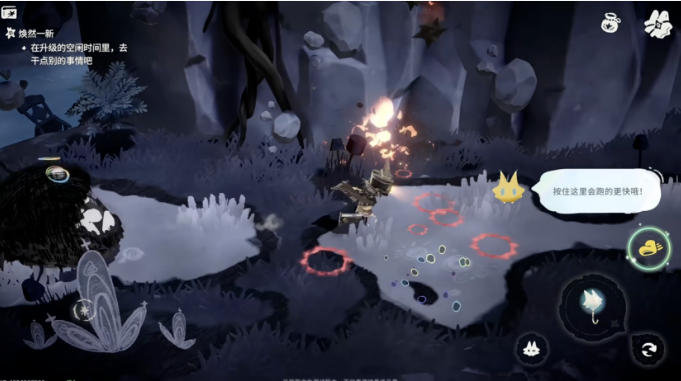 基于这一设定,PV最后也展现了部分战斗玩法:作为“遗忘”概念化身的“忘忘怪”会攻击并吃掉玩家记忆,视频展现了一段忘忘怪追逐玩家的画面。此时游戏画面变为灰暗色调,玩家需要一边躲避陨石,一边逃离身后的怪物。随后的BOSS战中,也没有展现明显的攻击手段,玩家只能依靠翻滚躲避怪物攻击。