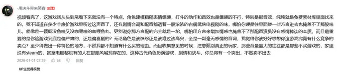 《墨者》此举引发了网友的广泛讨论。对于游戏的品质,批评的声音主要集中在技术细节上。有网友直言不讳地指出:“角色建模粗糙表情僵硬,打斗的动作和音效也是僵硬的不行,特别是那音效,纯纯就是免费素材库里面找来的……就像是一颗既没鱼味又没咖喱味的咖喱鱼丸。”