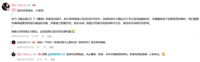 然而,就在玩家们惊叹于其独特的历史厚重感与“墨家”题材的稀缺性时,开发团队却在B站评论区表示:游戏目前处于概念阶段,以团队当前的能力与资源,若强行推进,最终作品质量将远无法达到预期的水准,因此《墨者》将暂时维持小限度持续开发。团队将转而开发一款体量更小的新作。