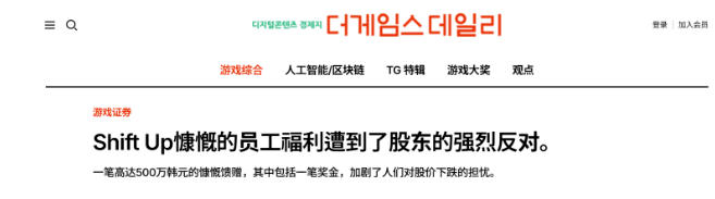 在公司的长期经营过程中,Shift Up坚持对成绩突出的项目和员工高调发放奖励——这在韩国游戏圈并不常见,反而更像是向中国二游团队的年终福利看齐。这一行为虽然受到当地玩家的肯定,却引发了韩国投资圈的极度不满。