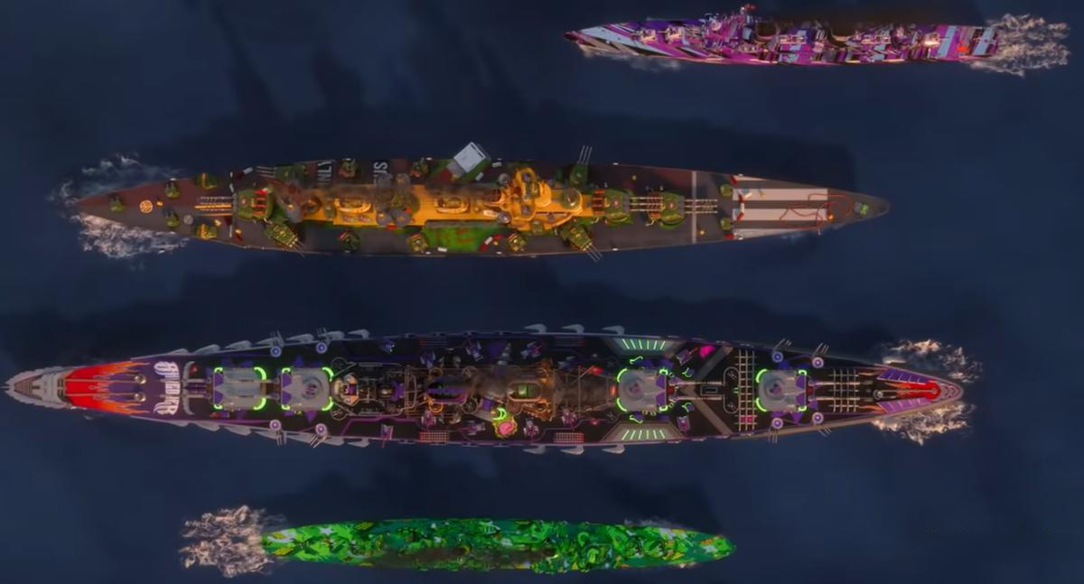 不可不提的还有与SNK的联动,当时接连推出了多款拳皇97主题指挥官和涂装。拳皇97是街机时代的格斗经典,《战舰世界》那次联动,直接把玩家带回了那个在街机厅里热血PK的年代,玩家操控着带有拳皇元素的战舰作战,满满都是自豪感!