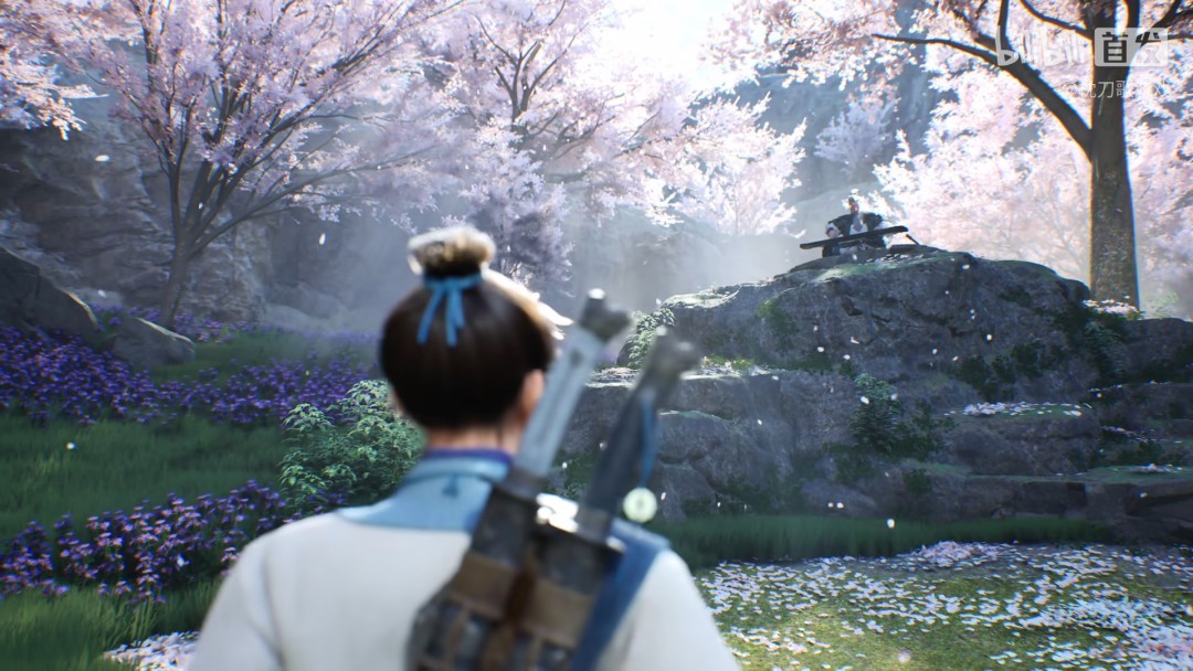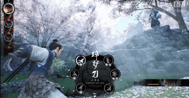 PV中首场战斗发生在桃花树下,主角与敌人对剑。招式展示里,“碎梦刀”给人留下了比较深的印象:双手持刀突进,绕敌斩击,镜头跟随顺畅,没有明显的卡顿和违和感。