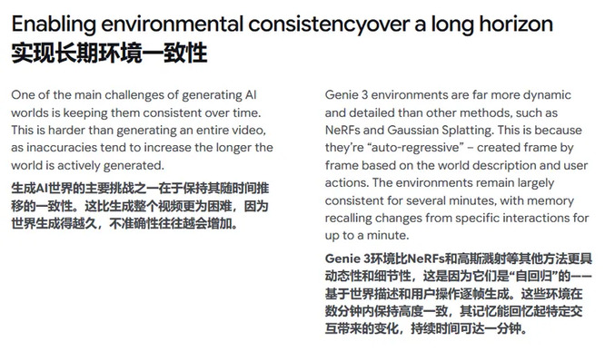 Genie 3目前仅拥有约1分钟的“视觉短时记忆”。这意味着,它无法维持一个长期的、连贯的游戏世界。对于习惯了在《塞尔达传说》或《艾尔登法环》中进行数十甚至上百小时沉浸式体验的玩家来说,Genie 3目前的产品形态,连“Demo”都算不上,充其量只是一个充满Bug的科技玩具。