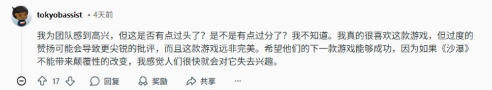 更有人感慨:“如果工作室的下一个作品不能带来颠覆性改变,人们很快就会失去兴趣。”道出了所有爆款背后的焦虑:荣誉是糖衣,压力才是内核。当游戏从“娱乐”升级为“国家名片”,开发者不仅要写好故事,还得扛起民族文化的期待。