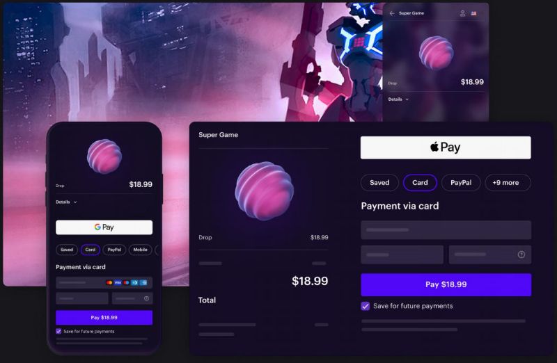Xsolla Pay Station自带手机、平板和PC等多端自适应UI,且支持多种结账体验集成,其智能排序算法PayRank还支持自动推荐、排序甚至千人千面展示用户最习惯的支付方式。游戏厂商还可通过可视化的配置为玩家提供适合自身游戏的定制化支付界面,在结账界面推送各种激励,促进用户转化。