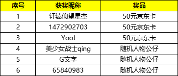本期活动已结束,感谢各位勇者大人的热情参与,以下是中奖名单: