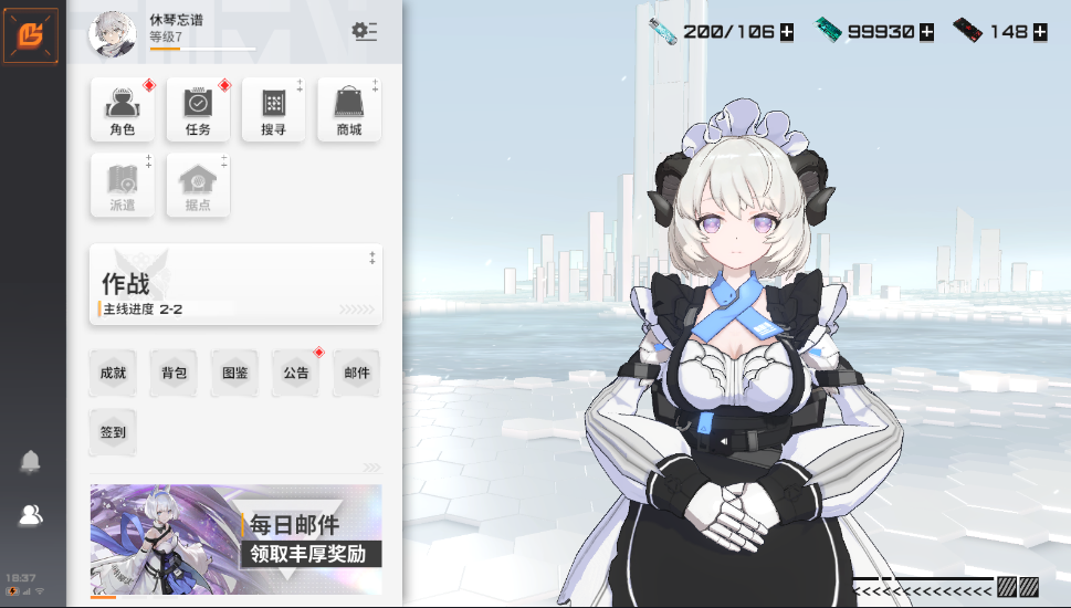 游戏的主页面我吹爆,抽屉式设计将战斗、养成、邮件、活动等lab整合在了一个页面,基本上90%的部分都留给了玩家的看板娘展示,配合角色的live2d动画,不会有审美的疲惫感。