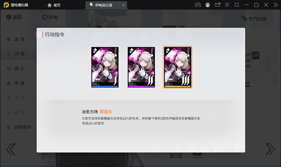 至于养成,《伊甸启示录》和市面上核心向二次元游戏基本大同小异,强化、觉醒、突破、模块基本上该有的都有,抽到的重复角色可以提升角色的「终极指令」效果。