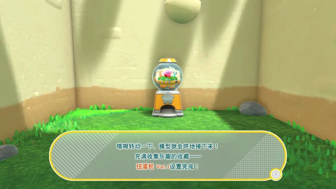 解谜要素也与3D视角紧密联系。此次的全3D和塞尔达式的有所区别,更多仍是制作人预设的视角,初看是种局限,但一定程度增加了谜题的隐藏度。当卡比在纵深方向运动,而隐藏关卡往往就藏在横向的视觉盲点中。同一场景的反复运用也构成了密室的谜题,游戏中存在两个房间来回绕圈走动的关卡,通过解锁不同房间的秘密,地上会出现金币引导你回到前一个房间解锁新的谜题。