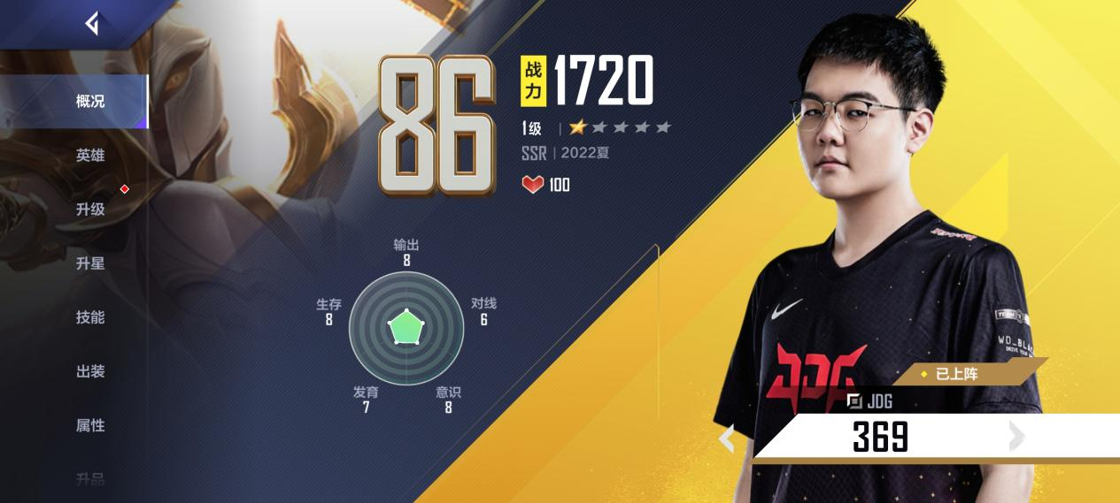 骰子哥369是SSR卡牌哦~评分86分~新一代国产上单~整体很不错的~