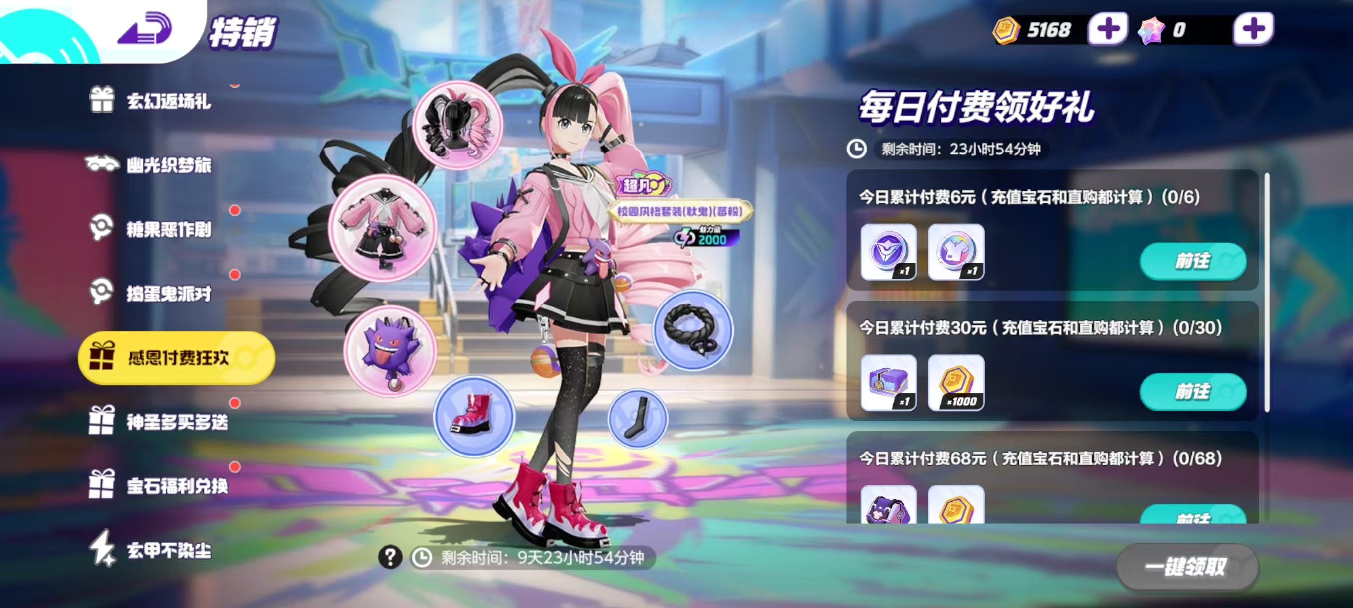11月20日10点起,佳节每日累计付费得好礼!校园风格套装(耿鬼)(莓粉)等你来拿!