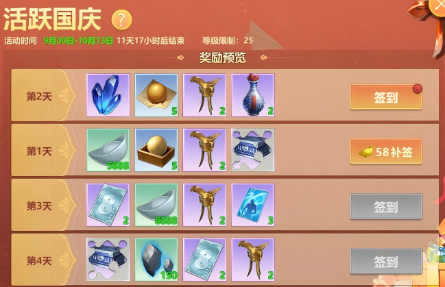 活动期间内,等级达到25级的大侠,每日未参与活动的奖励找回花费减半。