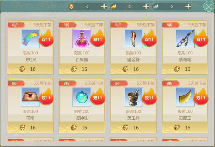 活动期间内,游戏内将限时开放双十一特惠商店,银两、百果露、高级玄晶、同伴招募帖、坐骑驯养丹等诸多物品折扣上架。在双11特惠商店中购买了任意物品,即可获得双十一商店购买商品全额免单机会(仅限11月11日20:30点前的商店消费,每个服务器抽取一位大侠),同时商店中购买超过1000金币赠送外观通用5折券(7天),超过2000金币可获赠明玉金鸾气泡(14天),一年一度的双十一特惠商店,各位大侠千万不要错过。