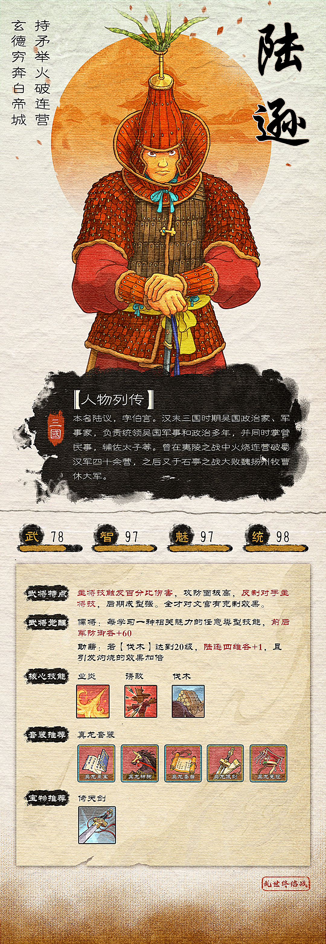 武将传记:拥有卓越的军事才能,谋羽取荆、夷陵破蜀,一生出将入相,统领吴国军政二十余年。