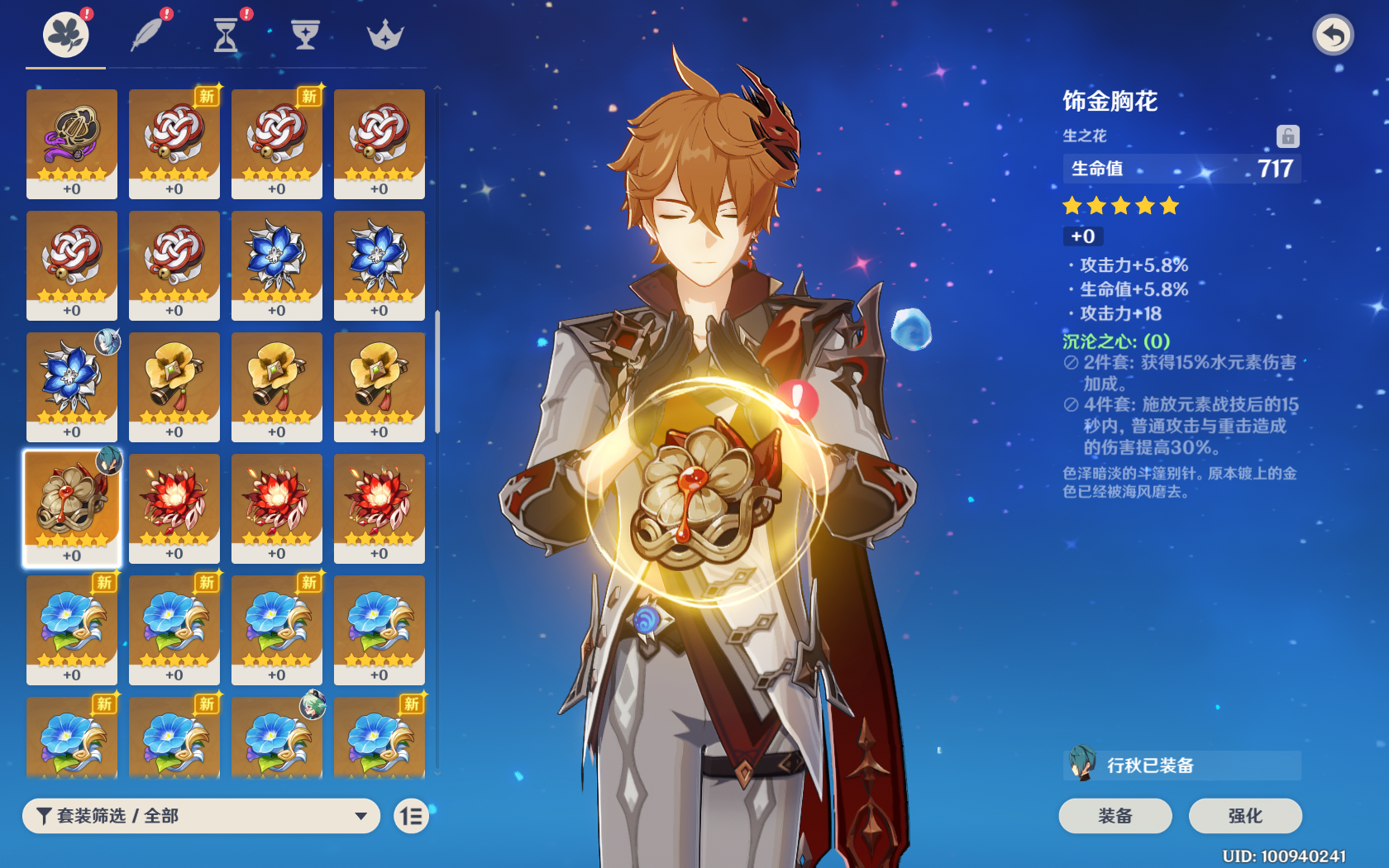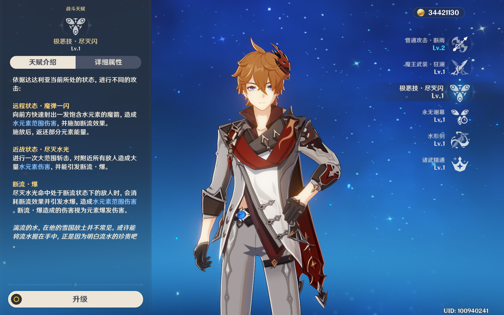 圣遗物:目前的水套4件套并不完全适用公子,推荐组合是2角斗与2水套,能够增加攻击力与水属性伤害,也比较好凑。后面3件主属性推荐是攻击沙,水伤杯,双暴头;副属性双暴>攻击>元素精通。