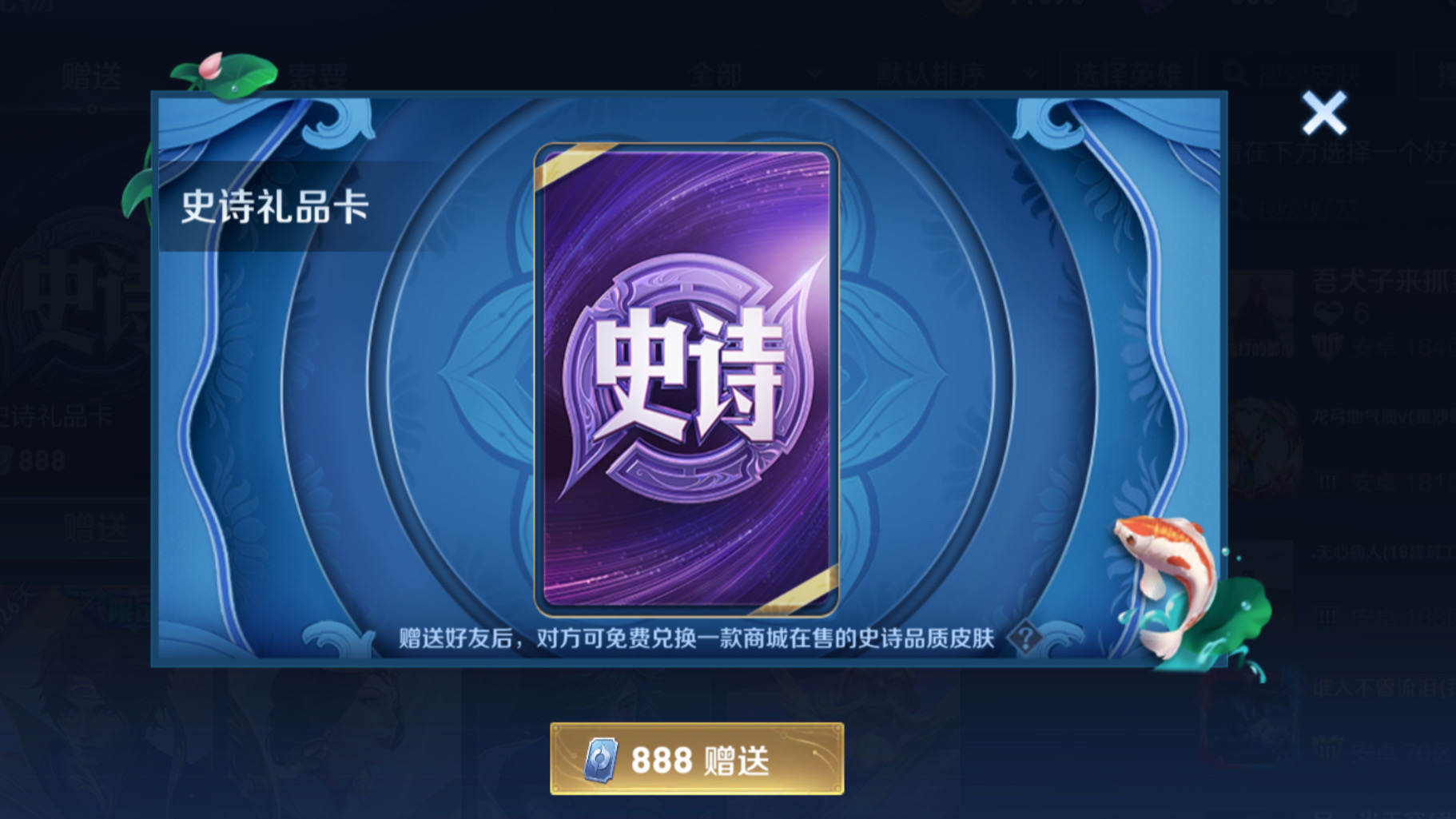 然后这个活动的大奖就是史诗皮肤卡,新赛季加入了一个史诗皮肤卡,拥有皮肤卡就可以去游戏商城任选一款价格在888点券之内的史诗皮肤进行兑换,所以这个活动还是非常值得参与的,万一运气好,说不定就中了这个皮肤卡了。