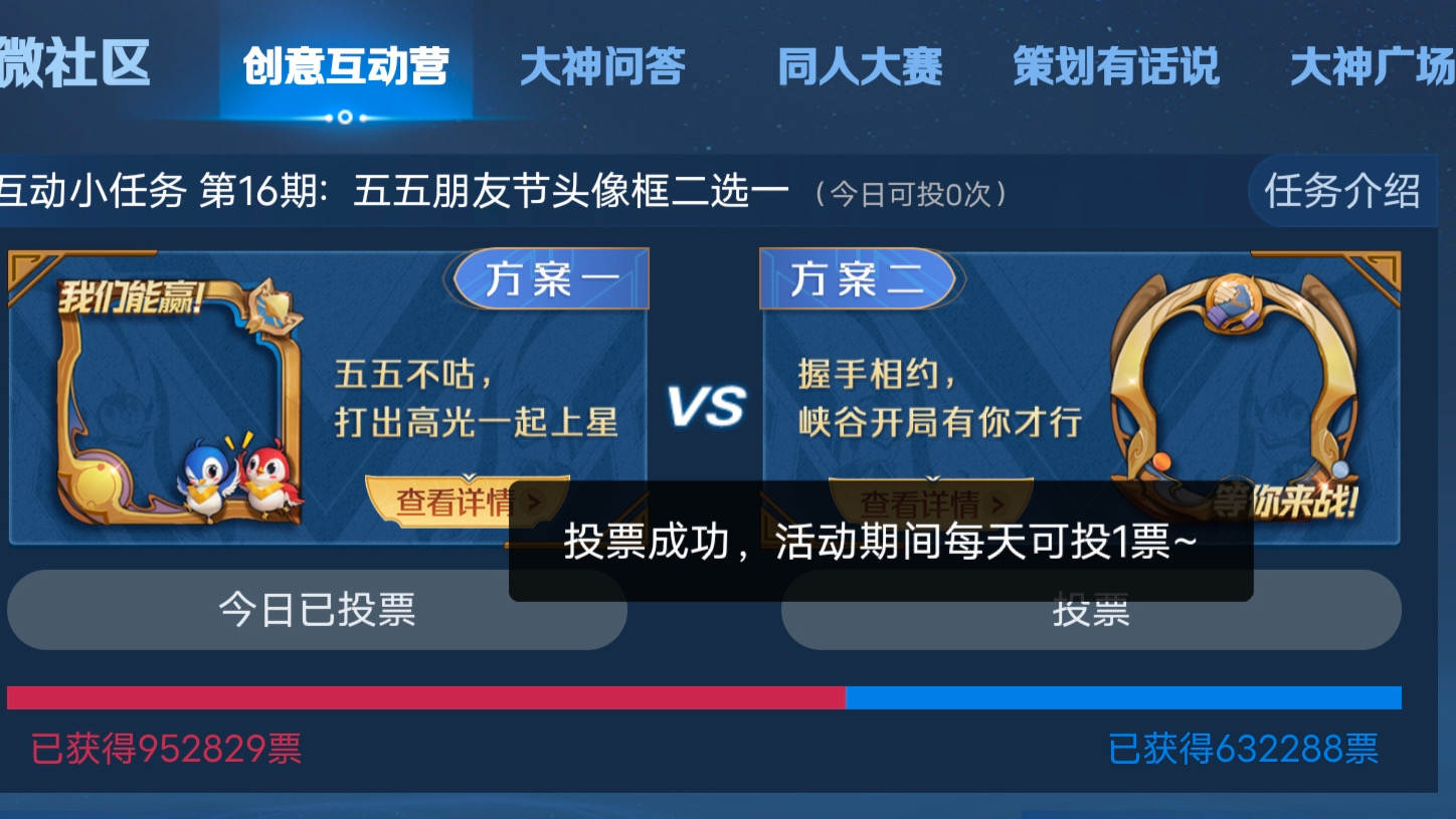 然后五五开黑节也快到了,今年五五开黑节的头像框票选活动也开启了,目前结果也已经基本确定了,方案一会获得胜利,也就是上图中左边的那款方案。