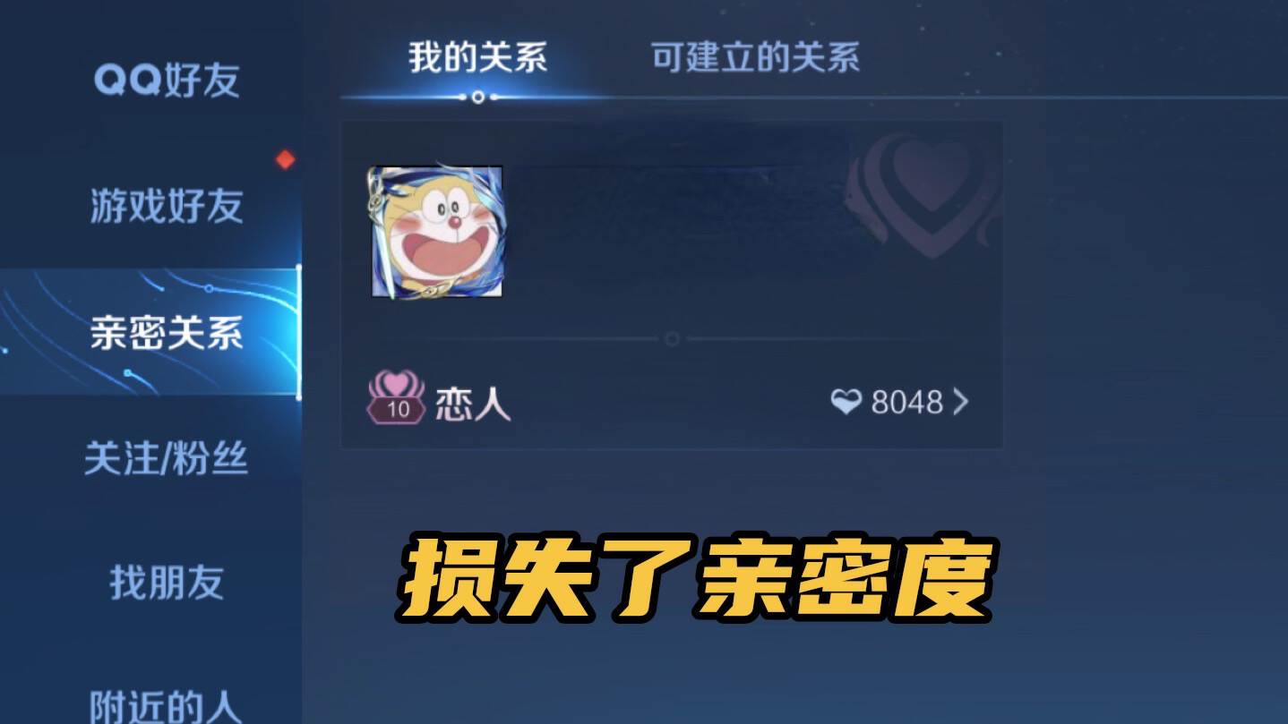 第三个方面就是损失亲密度了。亲密度的损失是有贼难受的,因为这个亲密度除非充钱,不然只能自己和亲密好友一起打游戏、互动,涨一点点亲密度了。