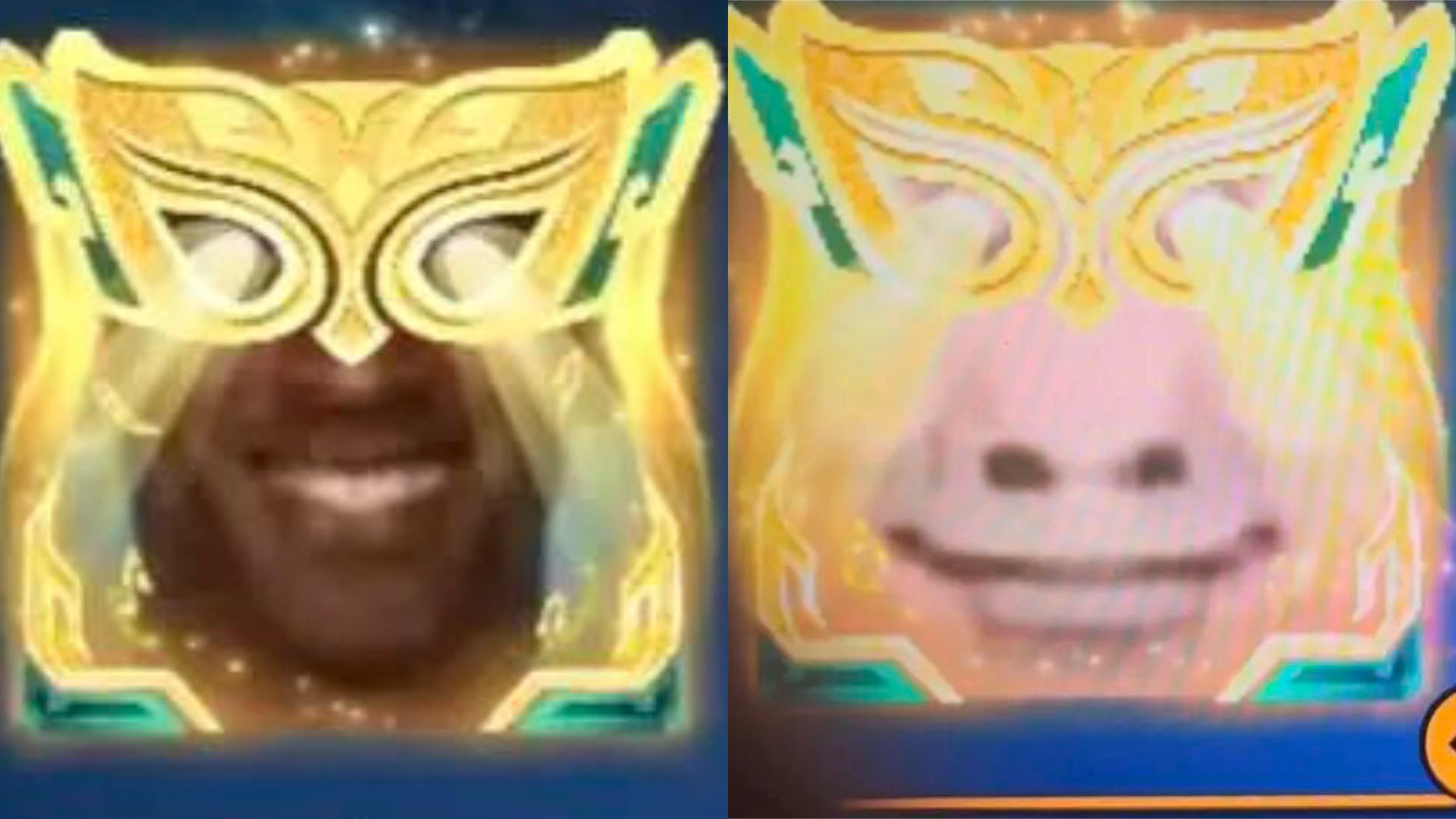 头像框的面具,对应人物头像的两个眼睛,看起来非常的滑稽。