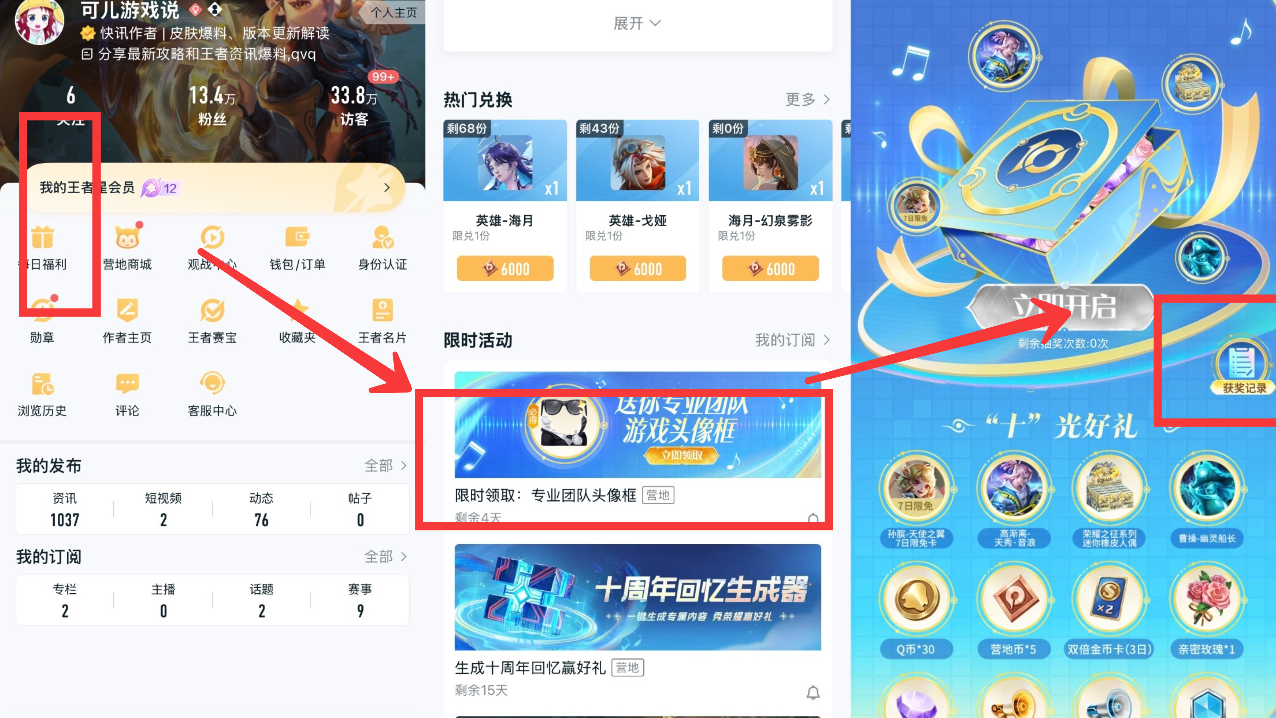 头像框的获取活动在王者营地,如下图所示,在营地中找到每日福利,然后有一个限时活动,点进去就可以直接领取这个头像框了。