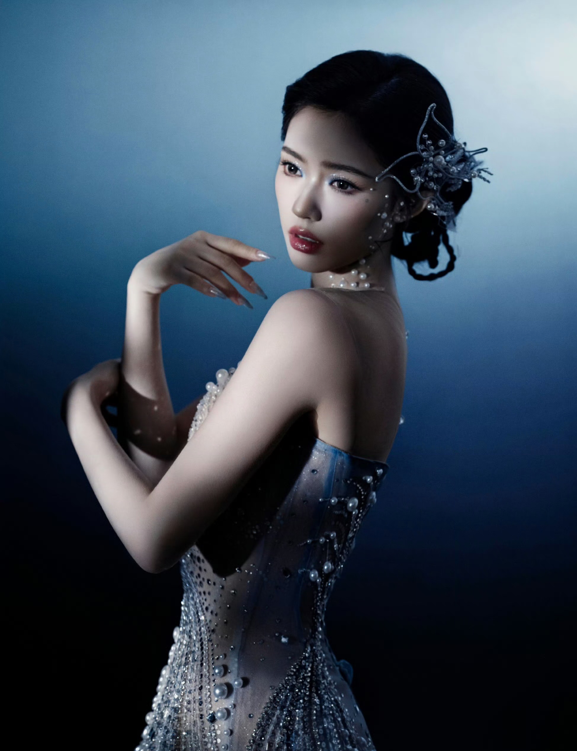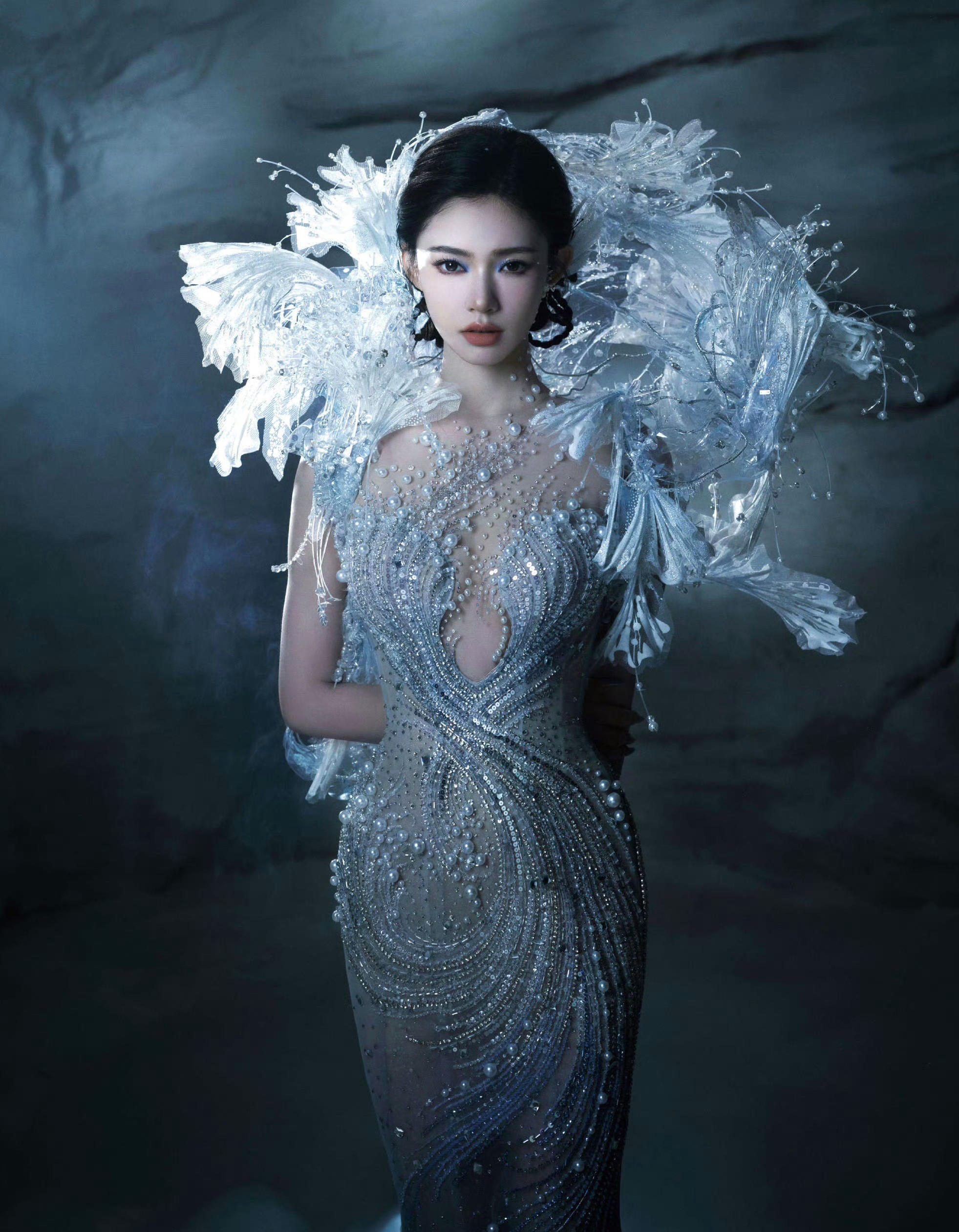 能看到林允身穿一身银色的衣裙,裙子很有质感,而且非常的显身材,为了让这件裙子更加的高级,设计师还给这件裙子上面增加了很多白色的珍珠。