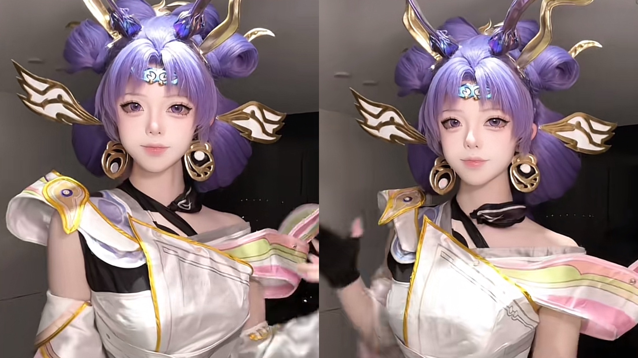 另外,网红桃泽早睡也曾经cos过孙尚香的年限皮肤,她的这个年限皮肤同样被很多玩家喜欢的。能看到这位网红同样也穿着白色的衣裙,头上的紫色假发相对来说比较浮夸,头上还有银色的装饰,再搭配大大的耳环,还有大大的眼睛,看起来也是比较完美的。