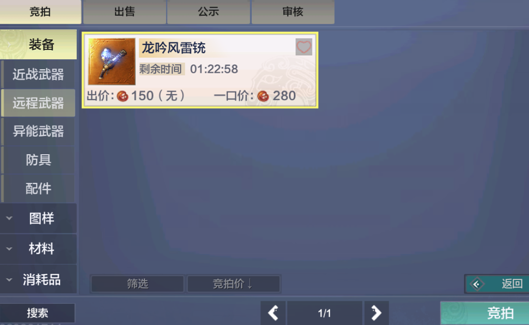 风雷铳的获得方式有二种,一种是通过收集风雷铳的图纸和制作材料在锻造台进行制作。图纸可以击杀首领图腾蚩尤获得;第二种方式是直接在拍卖行购买。